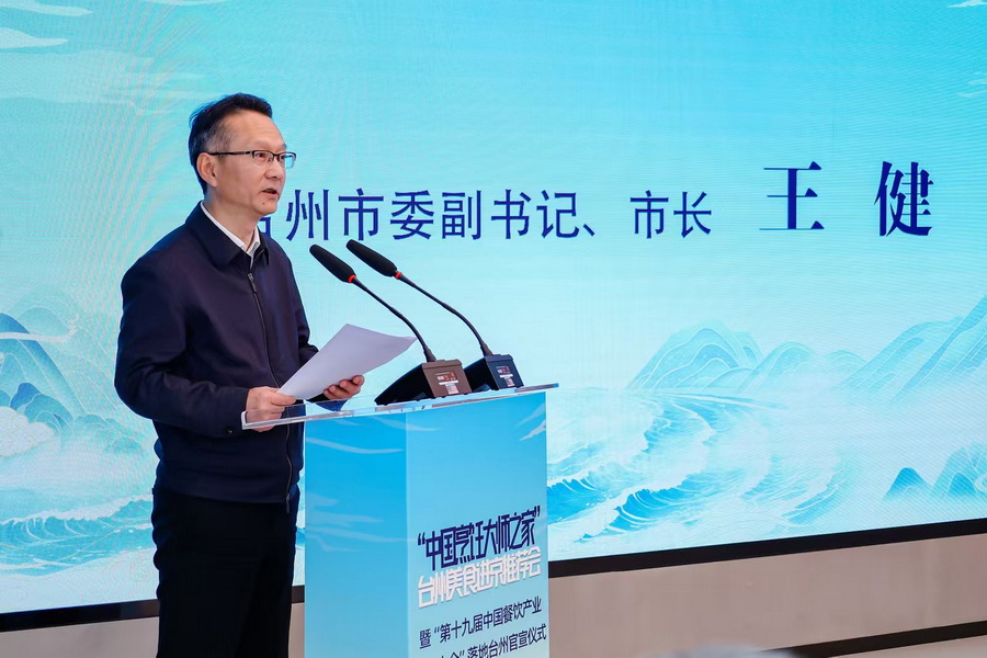 台州市委副书记、市长、市政府党组书记王健出席活动并致辞(中国烹饪协会供图) 王健在致辞中,对中国烹饪协会长期以来给予台州美食与餐饮产业发展的支持表示感谢,并介绍了台州餐饮产业的发展成果。他提到,台州诞生了中国目前获得米其林星级总数最多的餐饮品牌——新荣记,涌现了顺记浦江荟、林家一、老扁酒家等代表性餐厅,目前,台州美食IP曝光量超10亿次,成为越来越多人的“诗与远方”。