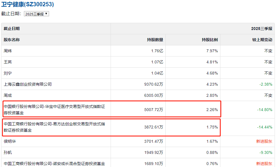 中国经济网北京3月23日讯 3月20日,卫宁健康科技集团股份有限公司(证券简称:卫宁健康)发布公告,披露公司实际控制人之一周炜及全资子公司深圳卫宁中天软件有限公司(以下简称“深圳卫宁中天”)涉及的单位行贿案二审判决结果。广东省茂名市中级人民法院已作出终审判决,维持深圳卫宁中天罚金80万元的原判,周炜的刑期则由一审的一年六个月减为一年三个月,罚金20万元不变。 公告显示,该案一审于2025年11月5日由广东省茂名市电白区人民法院作出判决,深圳卫宁中天因犯单位行贿罪被判处罚金80万元,周炜因犯单位行贿罪被判处有期徒刑一年六个月并处罚金20万元。随后,被告单位及被告人均提起上诉。 2026年3月19日,深圳卫宁中天及周炜的辩护律师收到广东省茂名市中级人民法院的《刑事判决书》。二审判决维持了一审对深圳卫宁中天的罚金判决及对周炜的定罪和附加刑部分,撤销了一审对周炜的主刑部分,改判其有期徒刑一年三个月(刑期自2025年11月5日起至2026年12月21日止,已折抵先行留置、羁押的45日),并处罚金20万元。目前,上诉单位及上诉人均决定服从该终审判决。 而根据卫宁健康此前发布的2025年三季报显示,华宝中证医疗交易型开放式指数证券投资基金与易方达创业板交易型开放式指数证券投资基金,分别持有卫宁健康5007.72万股和3872.61万股,占该公司股份的2.26%、1.75%。